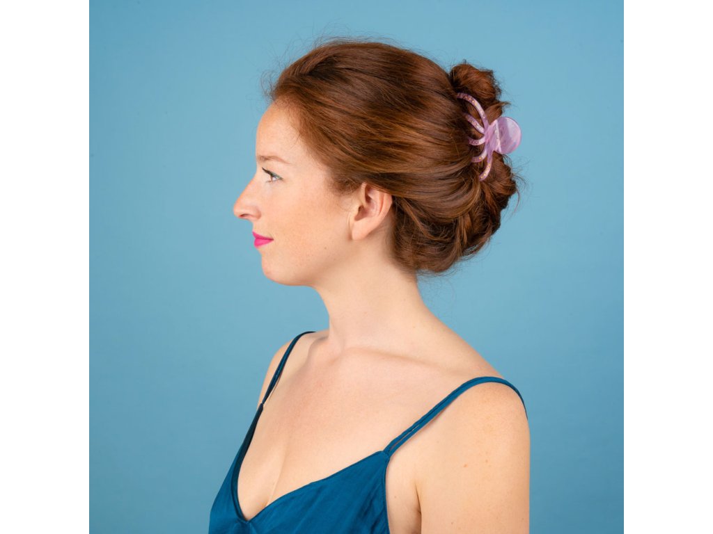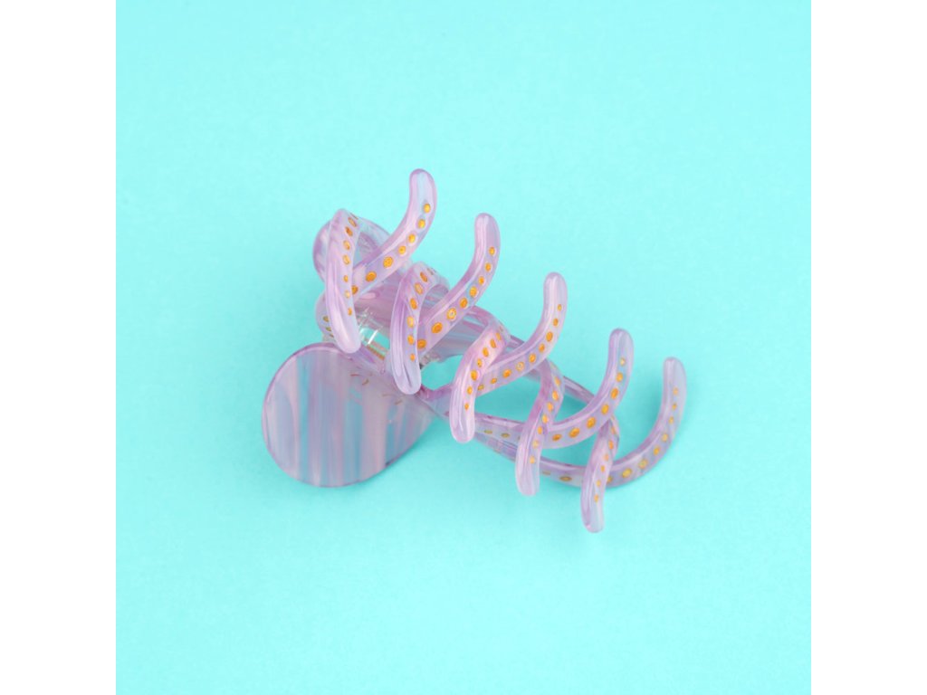 Jedinečná chobotnice v krásné šeříkové barvě se zlatými detaily. Chobotnice do vlasů na dovolené a prázdniny u moře, na léto a letní zahrádky, do města i k vodě. Hodí se do opravdu hustých vlasů nebo do zamotaných drdolů.