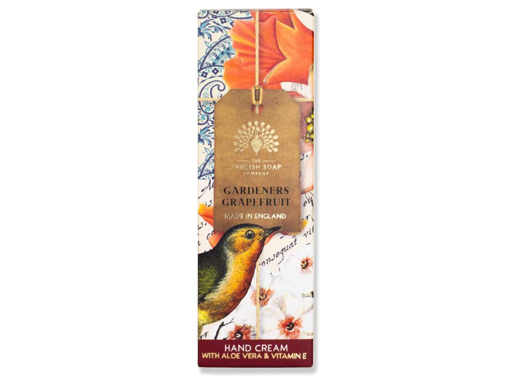 Krém na ruce v nádherné krabičce s ilustrací ptáčka výrazně voní po růžovém grepu, s tóny lile, citronu, magnólie a růže. Obohaceno o bambucké máslo a výtažky z aloe vera.