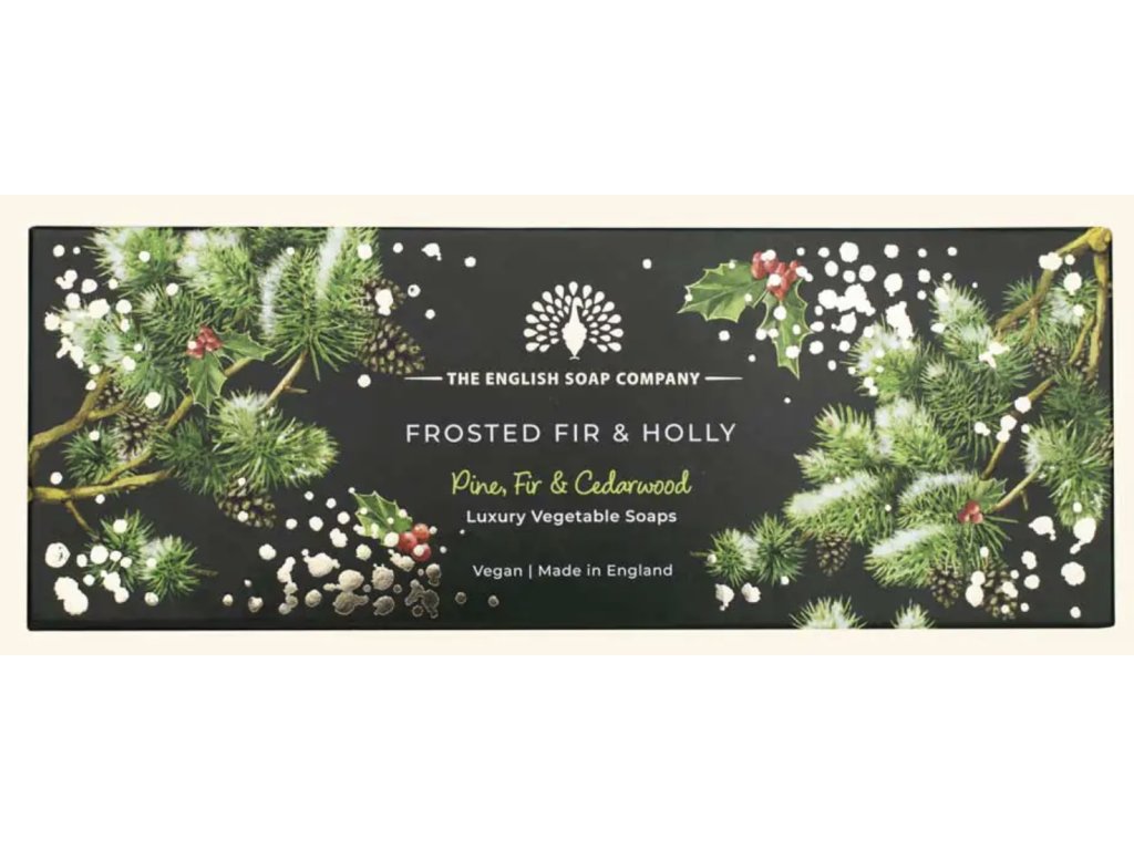 Vánoční mýdla English Soap Company Ojíněná jedle a cesmína, 3 ks