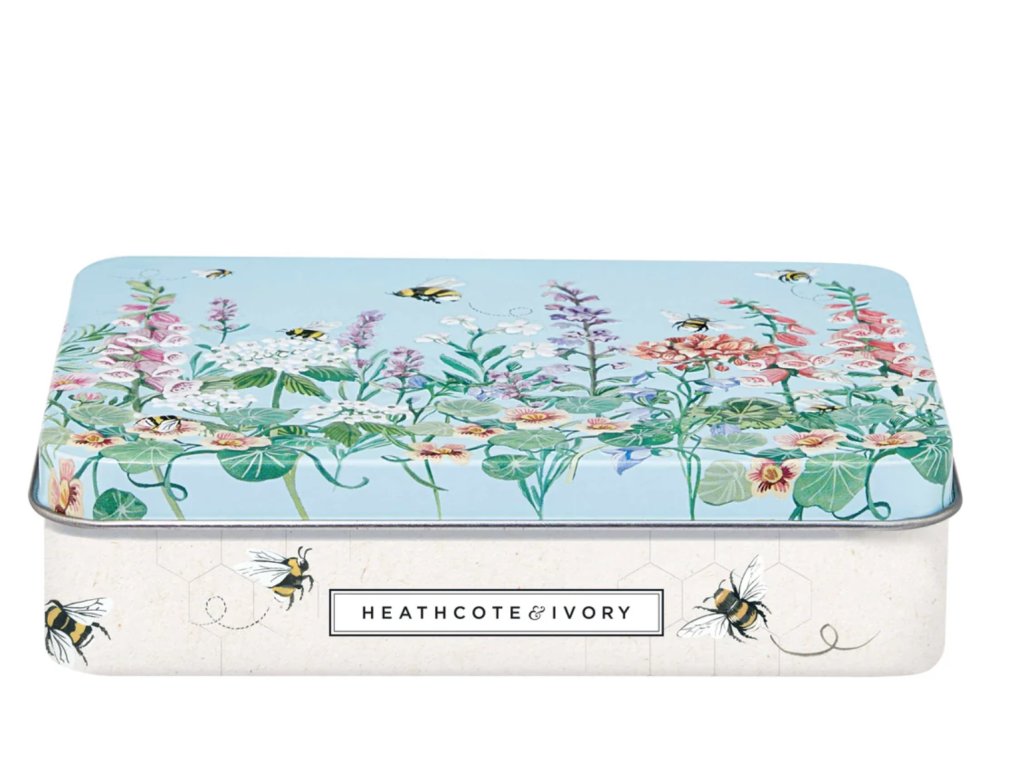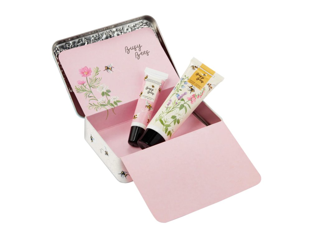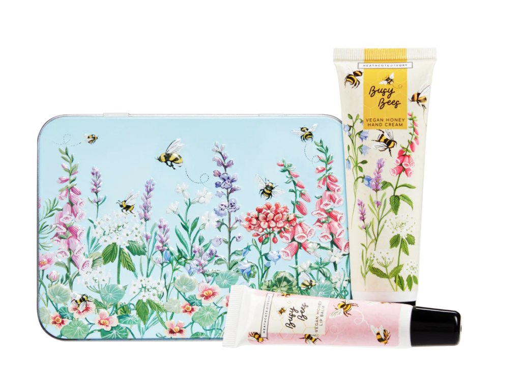 Heathcote & Ivory dárková sada krému na ruce a balzámu na rty v plechové krabičce Busy Bees, 2 ks