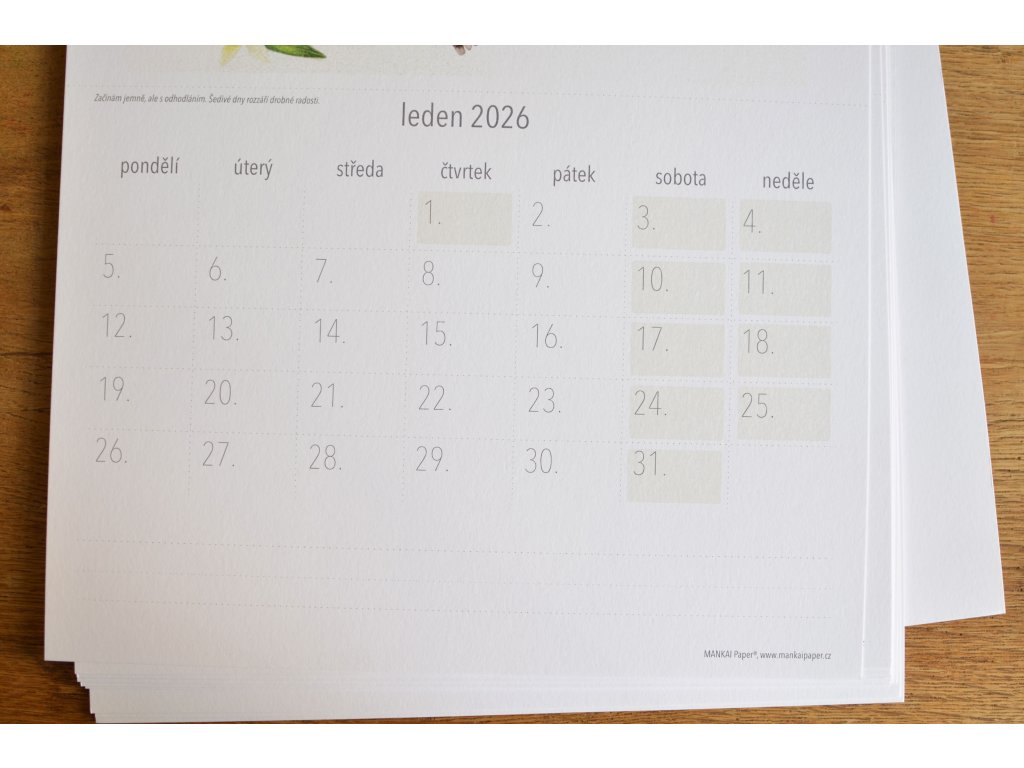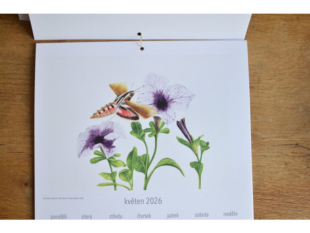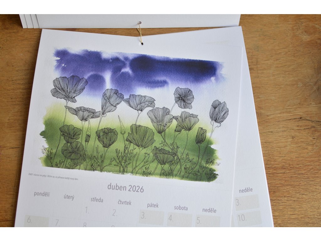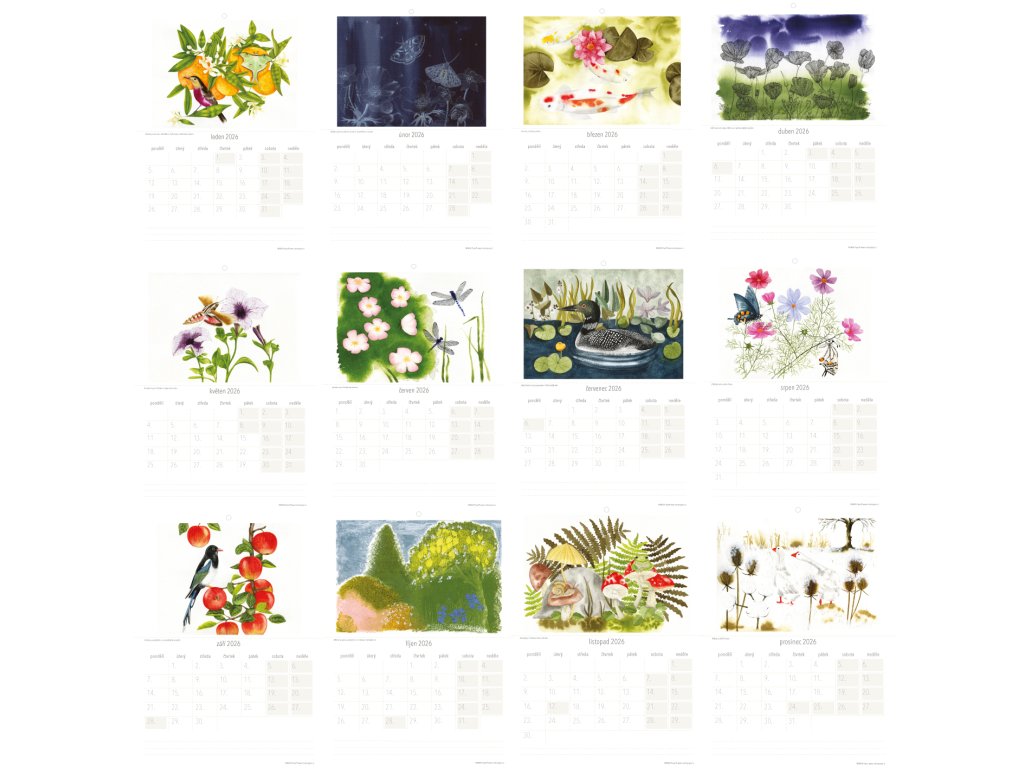 Měsíční kalendář 2026 s mými ilustracemi, které jsem malovala přímo na míru pro letošní kalendář, je vytištěný na fantastický 300g papír, takže si můžete obrázky lehce vystřihnout a zarámovat.