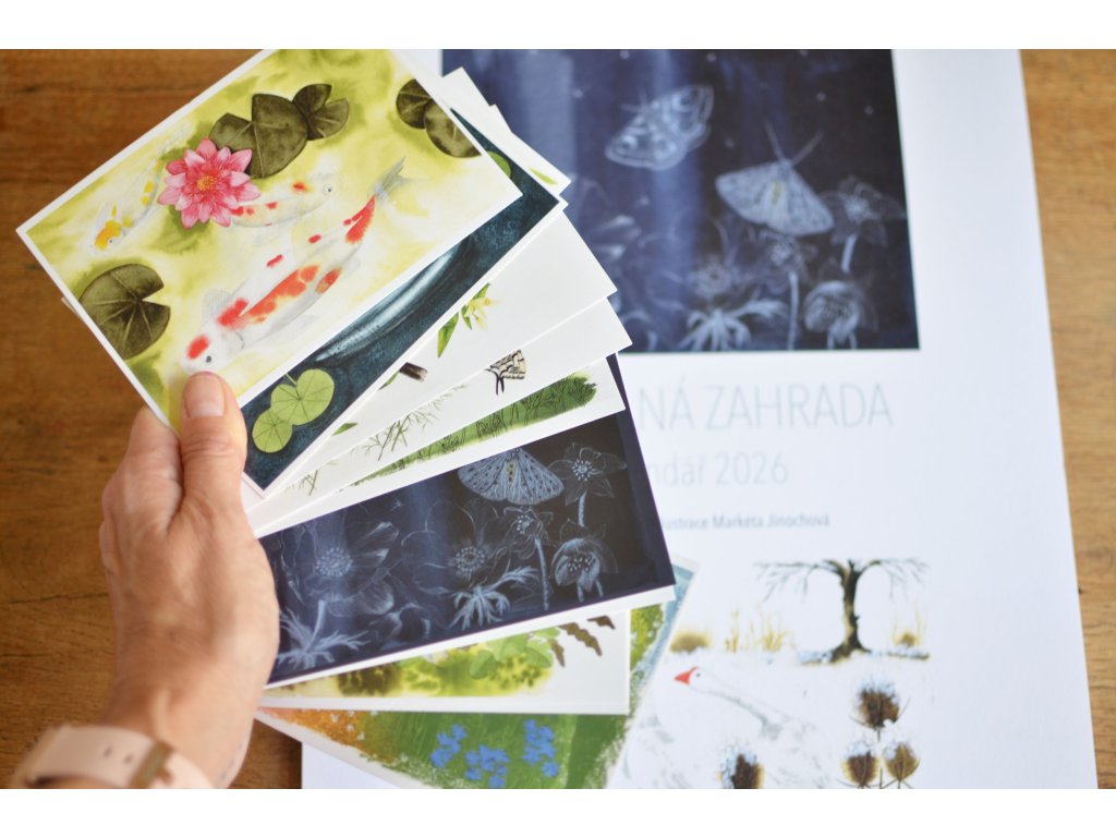 Měsíční kalendář 2026 Kouzelná zahrada + dárek sada 12 pohlednic