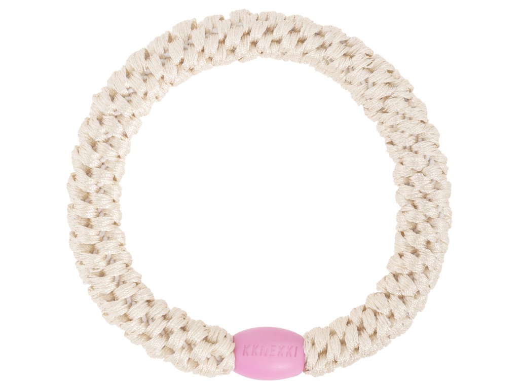 KKNEKKI klasická gumička v elegantním odstínu slonové kosti s růžovým detailem. Noste na ruce, ve vlasech, prostě přesně tak, jak to dělají ženy ve Skandinávii, které mají ve svém DNA styl a praktičnost.