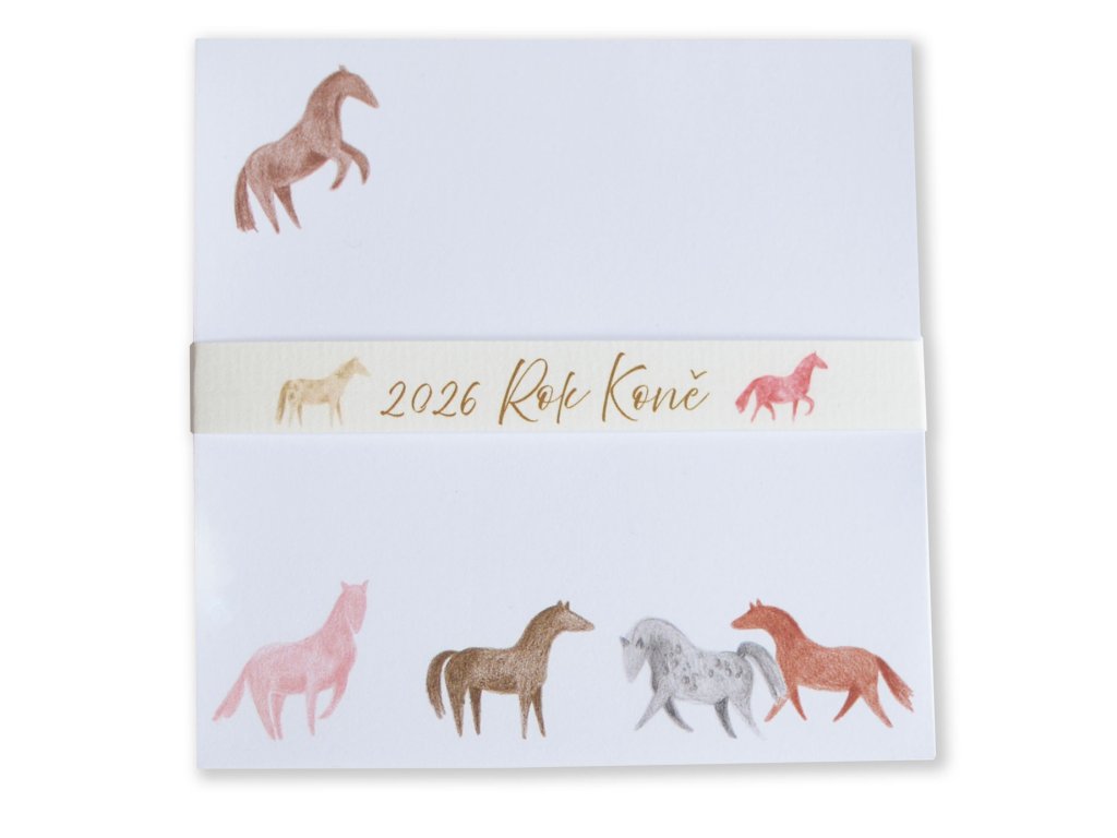 Čtvercový bloček 120x120 mm Koně s limitovaným páskem k roku Koně