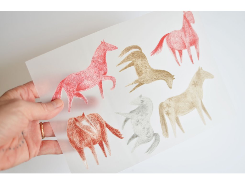 Nažehlovačky s koníky s velmi jemnými motivy v originálu kreslenými pastelkou. Ozdobte si oblíbené tričko, zakryjte flíček, udělejte radost sobě nebo malé milovnici / miloníkovi koní.