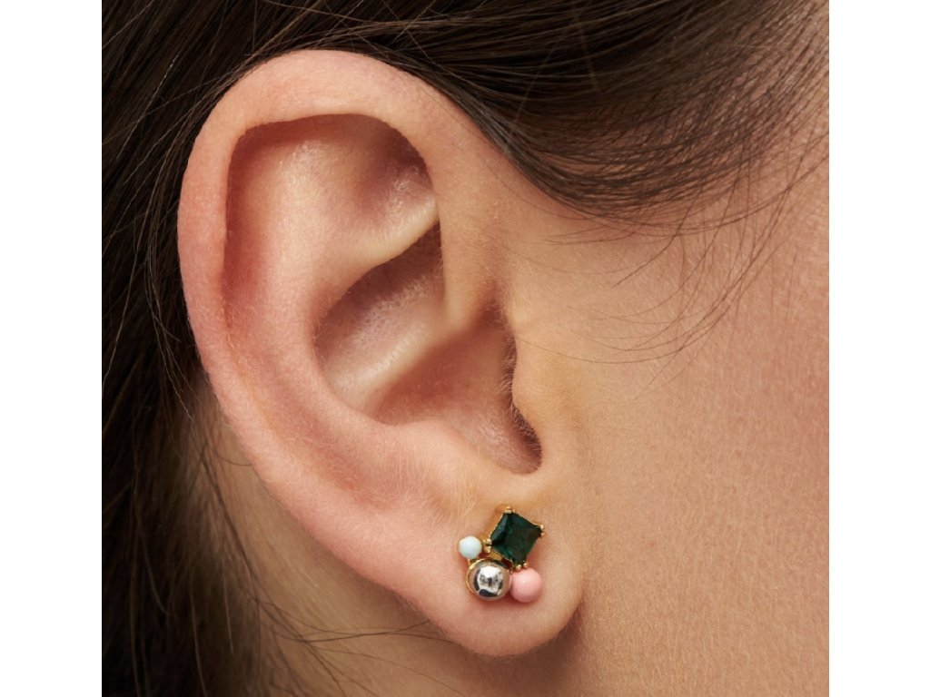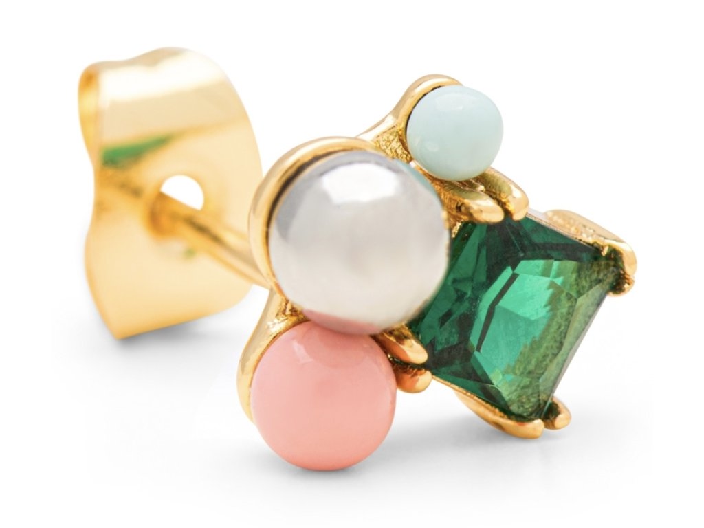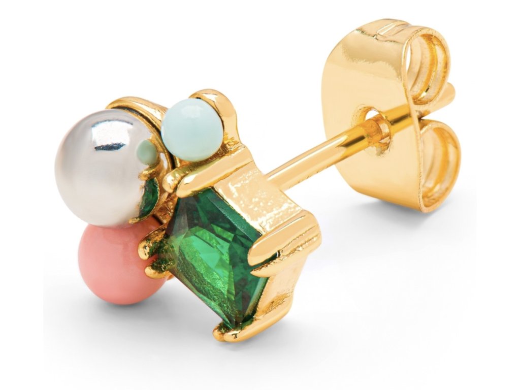 LULU Copenhagen single náušnice Bouquet s chryzolitem, pozlacená