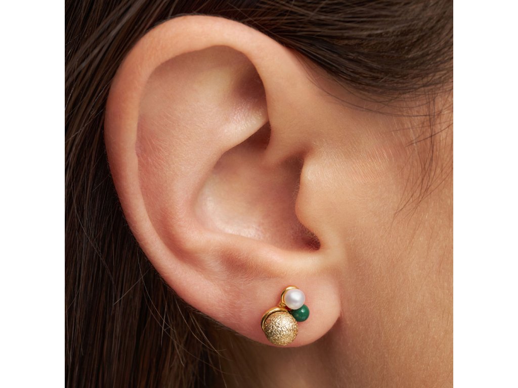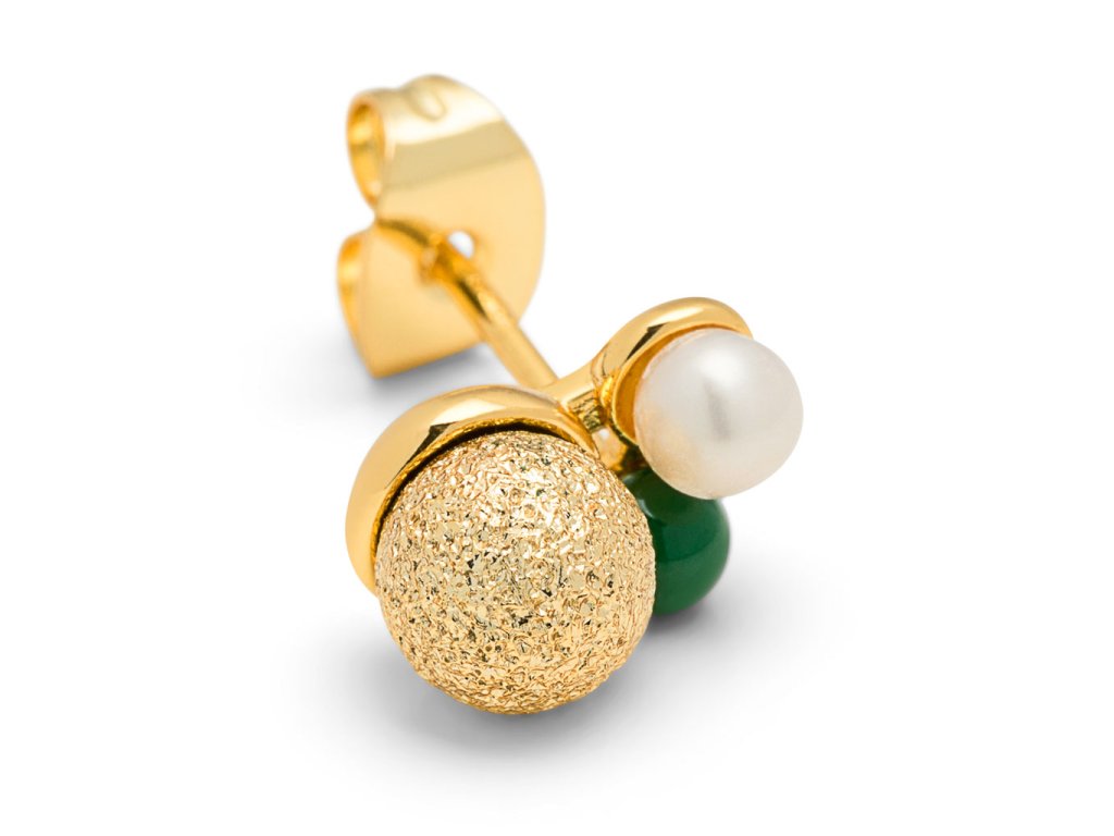 Jemná náušnice se sladkovodní perličkou, pozlacenou a zelenou smaltovanou kuličkou. Elegantní a něžná ozdoba. Pozlacená 18k zlatem. Single náušnice jsou perfektní k doladění outfitu, ideální pro více dírek v uchu, kdy si můžete nakombinovat náušnice podle nálady a příležitosti.