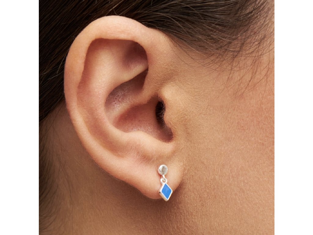 Kolekce Confetti je oslavou života a tahle drobná kusová náušnice je oslavou i sama o sobě. Postříbřená, ručně smaltovaná odstínem hluboké modré, kterou vídáme na obloze na horách a u moře. Decentně se houpe a dodává tím vzhledu šmrnc. Je šik a elegantní.