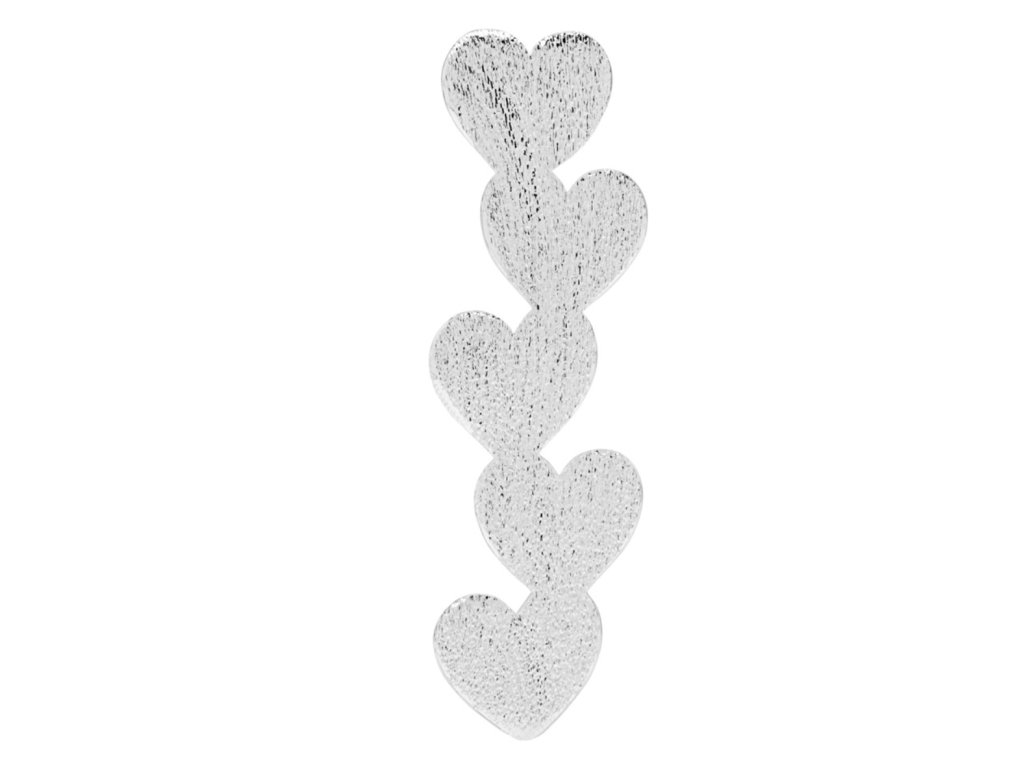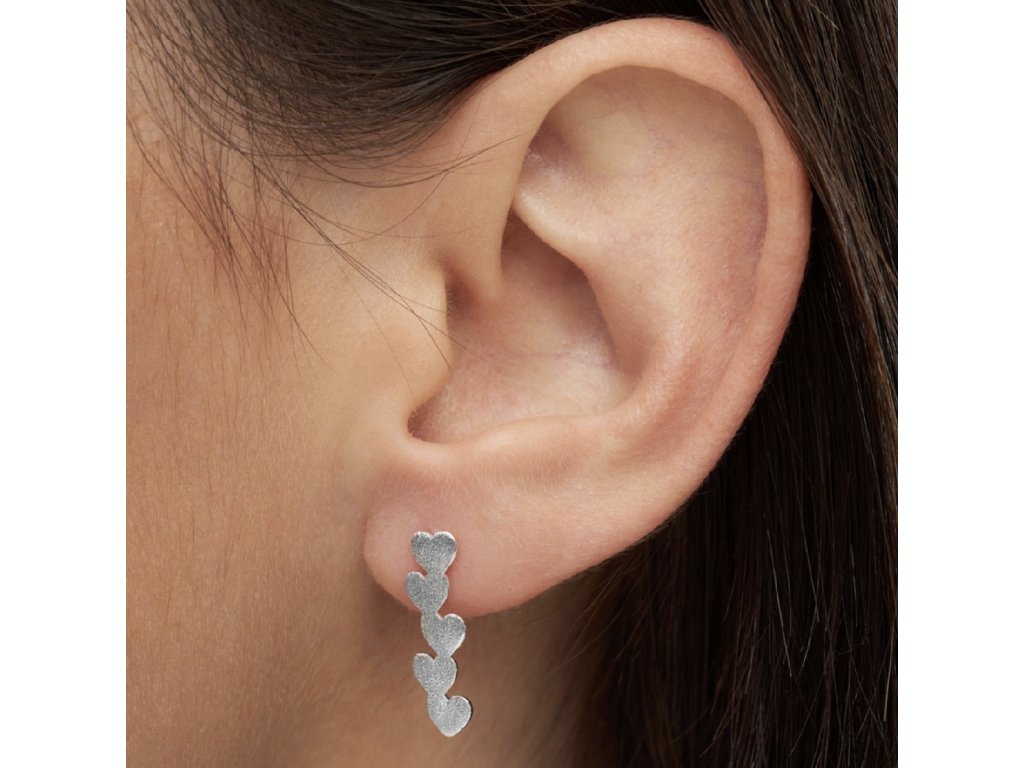 Velmi elegantní náušnice, která se hodí i na párty nebo do divadla. Skvělá bude například k černému outfitu. Ale pokud budete mít chuť rozzářit svůj den, hodí se prostě ke všemu. Tahle spojená srdíčka je kusová náušnice v minimalistickém skandinávském designu. Matný broušený povrch jí dává nádech luxusu a nenucenosti.