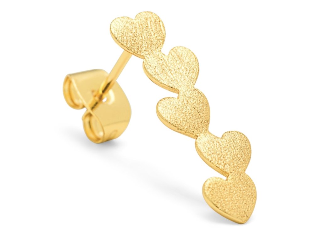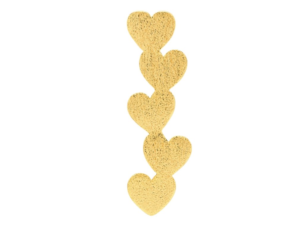 Velmi elegantní náušnice, která se hodí i na párty nebo do divadla. Skvělá bude například k černému outfitu. Ale pokud budete mít chuť rozzářit svůj den, hodí se prostě ke všemu. Tahle spojená srdíčka je kusová náušnice v minimalistickém skandinávském designu. Matný broušený povrch jí dává nádech luxusu a nenucenosti.