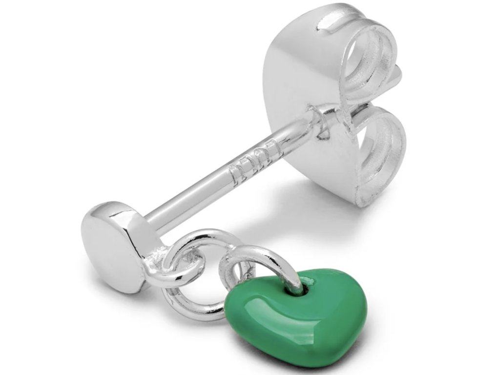 LULU Copenhagen single náušnice Love U - zelené srdíčko, postříbřená
