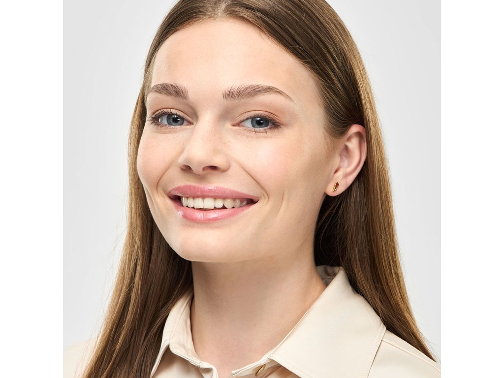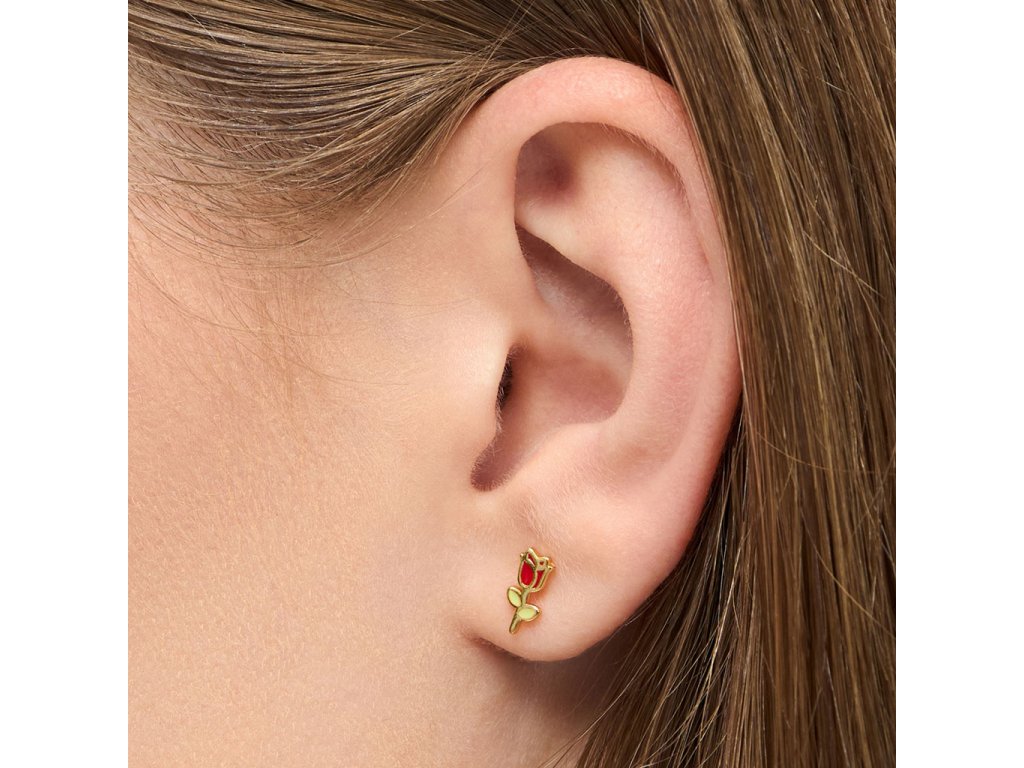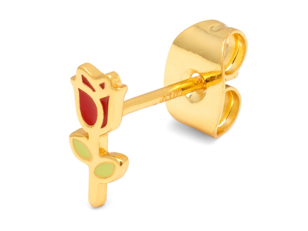 Kusová náušnice s malou růžičkou. Stříbrná náušnice pozlacená 18k zlatem. Single náušnice jsou perfektní k doladění outfitu, ideální pro více dírek v uchu, kdy si můžete nakombinovat náušnice podle nálady a příležitosti.