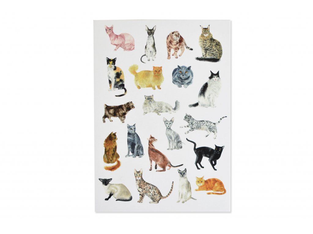 Na pohlednici jsou různé kočičí rasy, například Perská kočička, Ruská modrá kočka, oblíbená Mainská mývalí nebo klasická "Májová" micina, kterou všichni dobře známe.