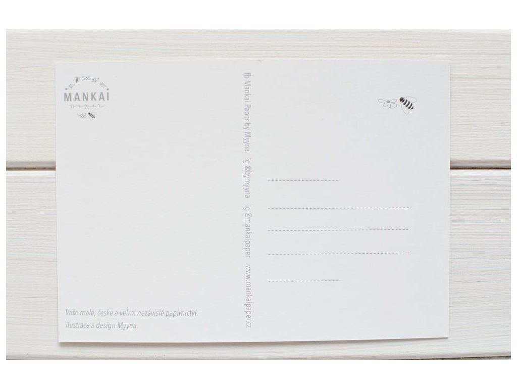 Velikost pohlednice je 105x148 mm, papír je 250g pohlednicový karton.
