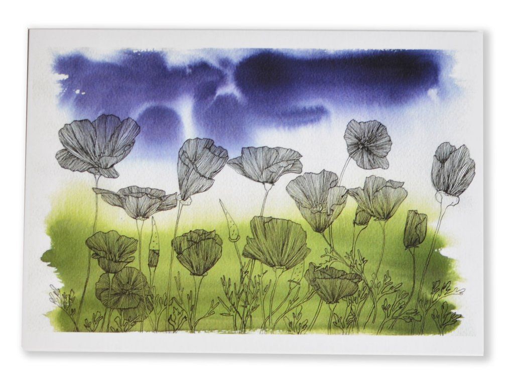Pohlednice se sluncovkami před bouří.